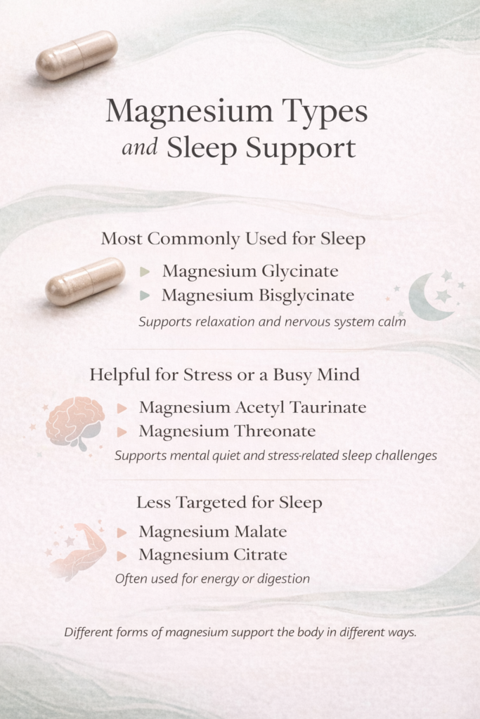 Magnesium can be a helpful part of supporting sleep, but not all forms work the same way. The type you choose matters, especially when sleep problems are influenced by stress, muscle tension, or a restless mind.